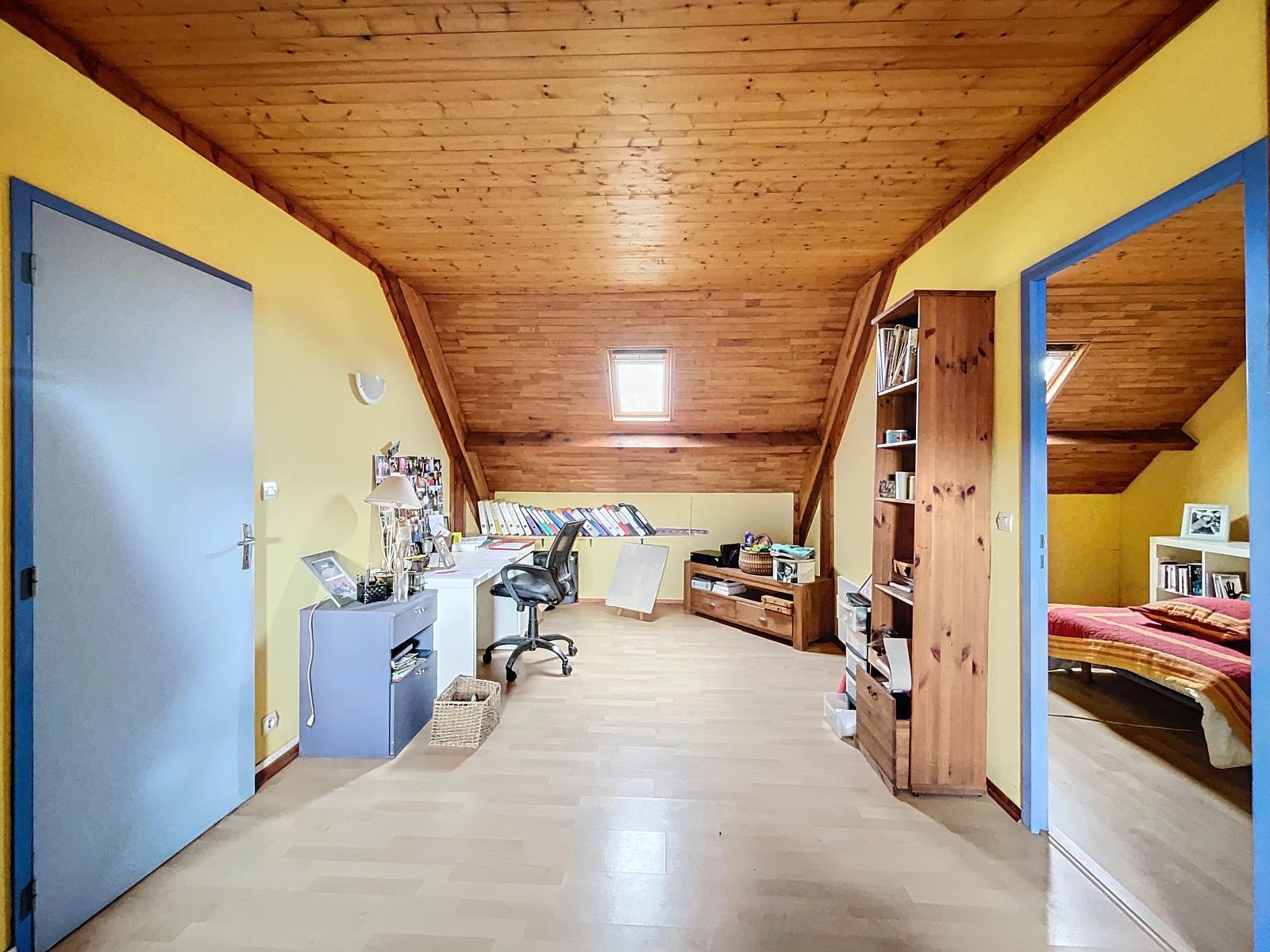 A l'étage, un dégagement distribue 3 chambres, un bureau, et une partie " libre" de 23m2 pouvant servir de salle de jeux, ou d'un espace détente, idéal pour une famille nombreuse.