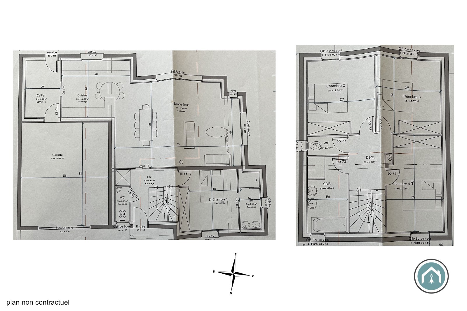 Au rez-de-chaussée : une entrée avec placard, une très belle pièce de vie d'environ 50m2 avec espaces salon/séjour/cuisine aménagée et équipée semi ouverte, une très belle suite parentale avec sa salle de douches attenante, un wc séparé, un cellier avec placards ainsi qu'un grand garage d'environ 30m2.