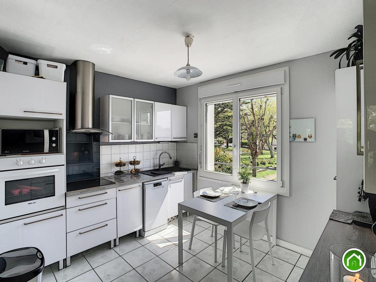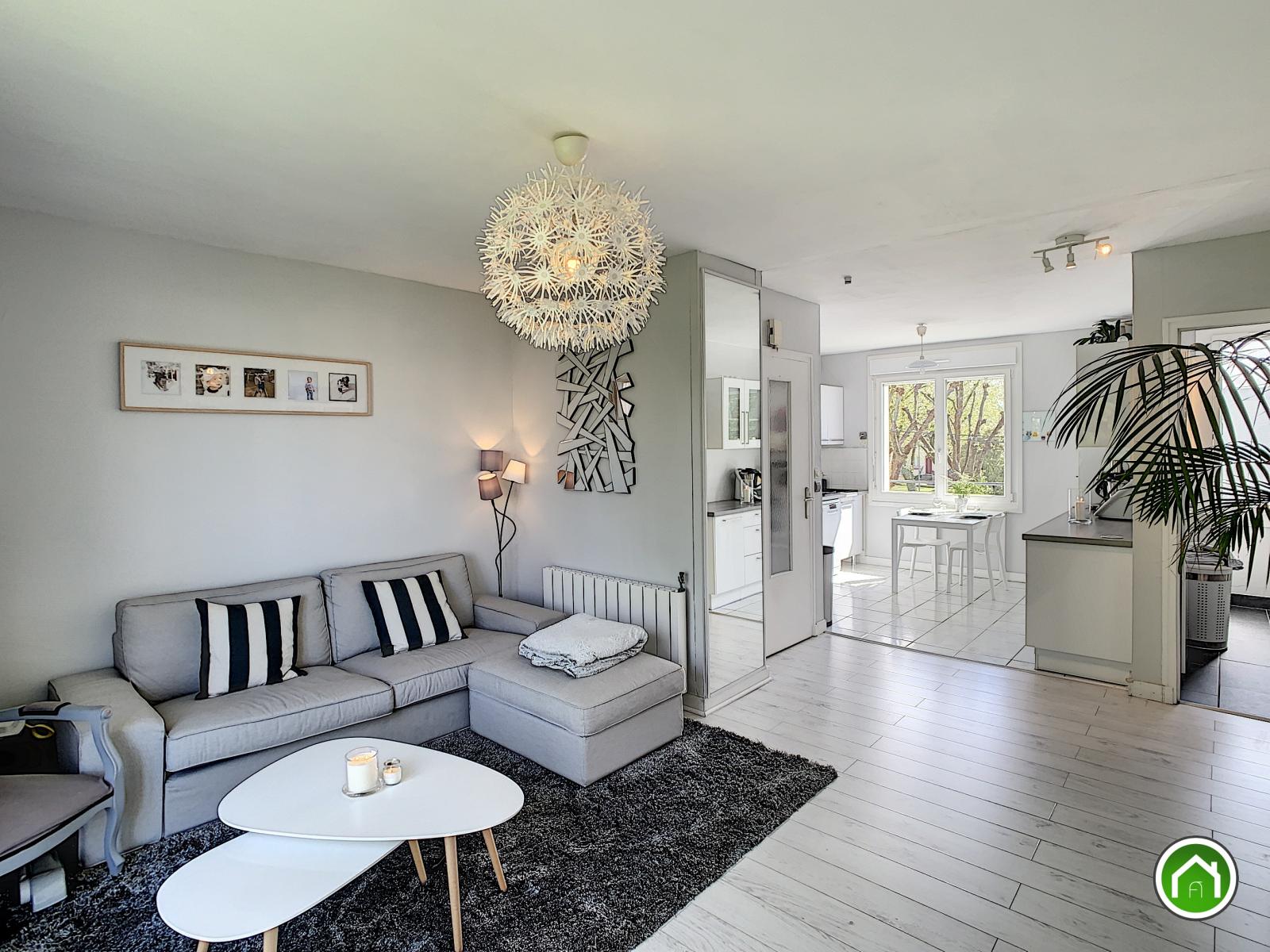 - Une habitation de 90m² comprenant, à l'étage, une très jolie et lumineuse pièce de vie traversante de 32m² avec cuisine aménagée et équipée ouverte, deux chambres (11,5 et 15,5m²), une salle de douches, un wc indépendant, et, en rez-de-jardin un bureau pouvant faire office de chambre, une grande buanderie de 15m² pouvant être transformée en chambre également.