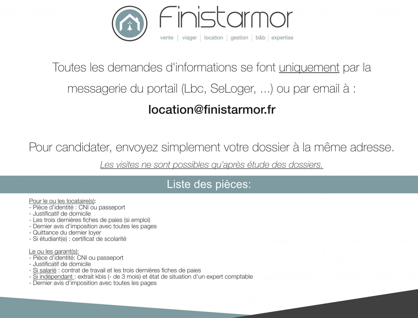 Dépôt de garantie : 1 mois de loyer hors charges