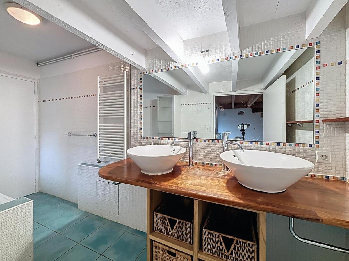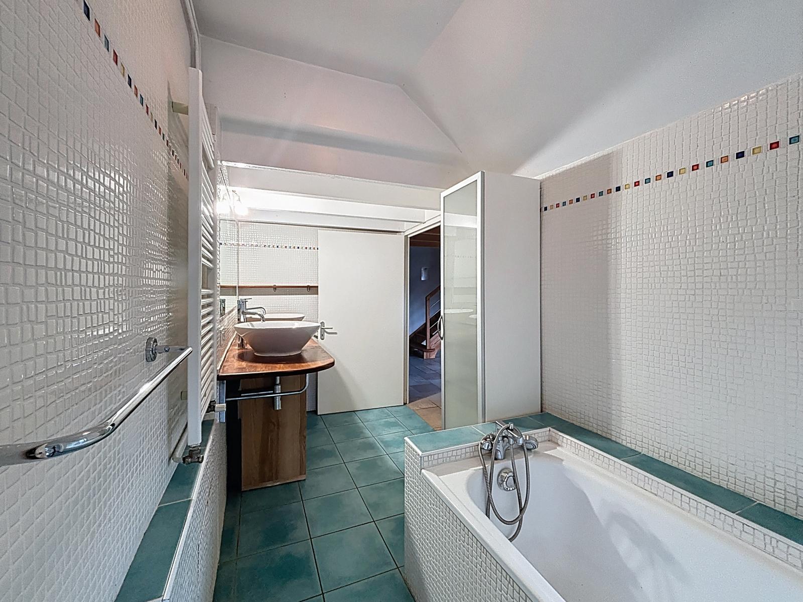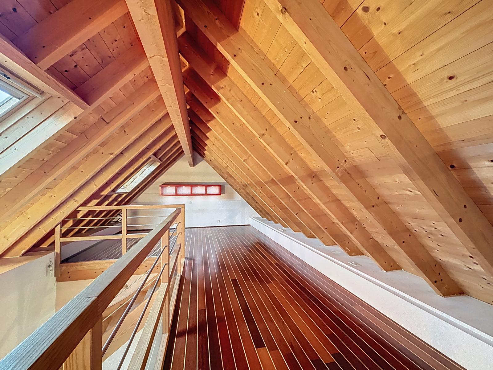 - A l’étage, la chambre parentale est en mezzanine, avec entrée indépendante. Cette pièce bénéficie également d’un beau dressing. Une salle de bains fonctionnelle vient compléter l’ensemble.