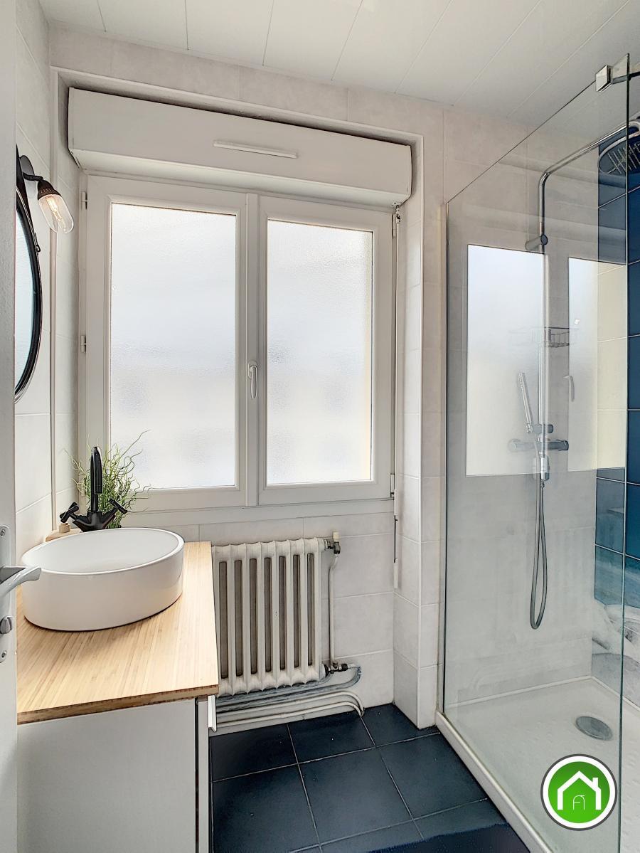 - second niveau : trois chambres (dont deux avec de grands placards), une salle de douches récente.