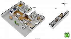 L'appartement bénéficie en outre de deux autres entrées, par l'immeuble cette fois, ainsi que d'un grand espace cave. Le garage est individuel et fermé.
